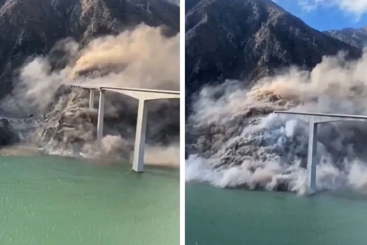 Köprünün yıkılmasının neden olduğu toprak kaymasının görüntüleri kameralara yansıdı. Polis, köprünün çöktüğü olayda can kaybı yaşanmadığını açıkladı.