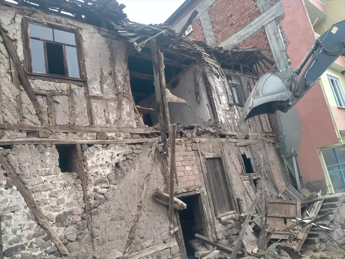 Uzun süredir kullanılmayan ve tehlike arz eden metruk yapının yıkımın ardından elde edilen odun, ihtiyaç sahiplerine dağıtılacak.