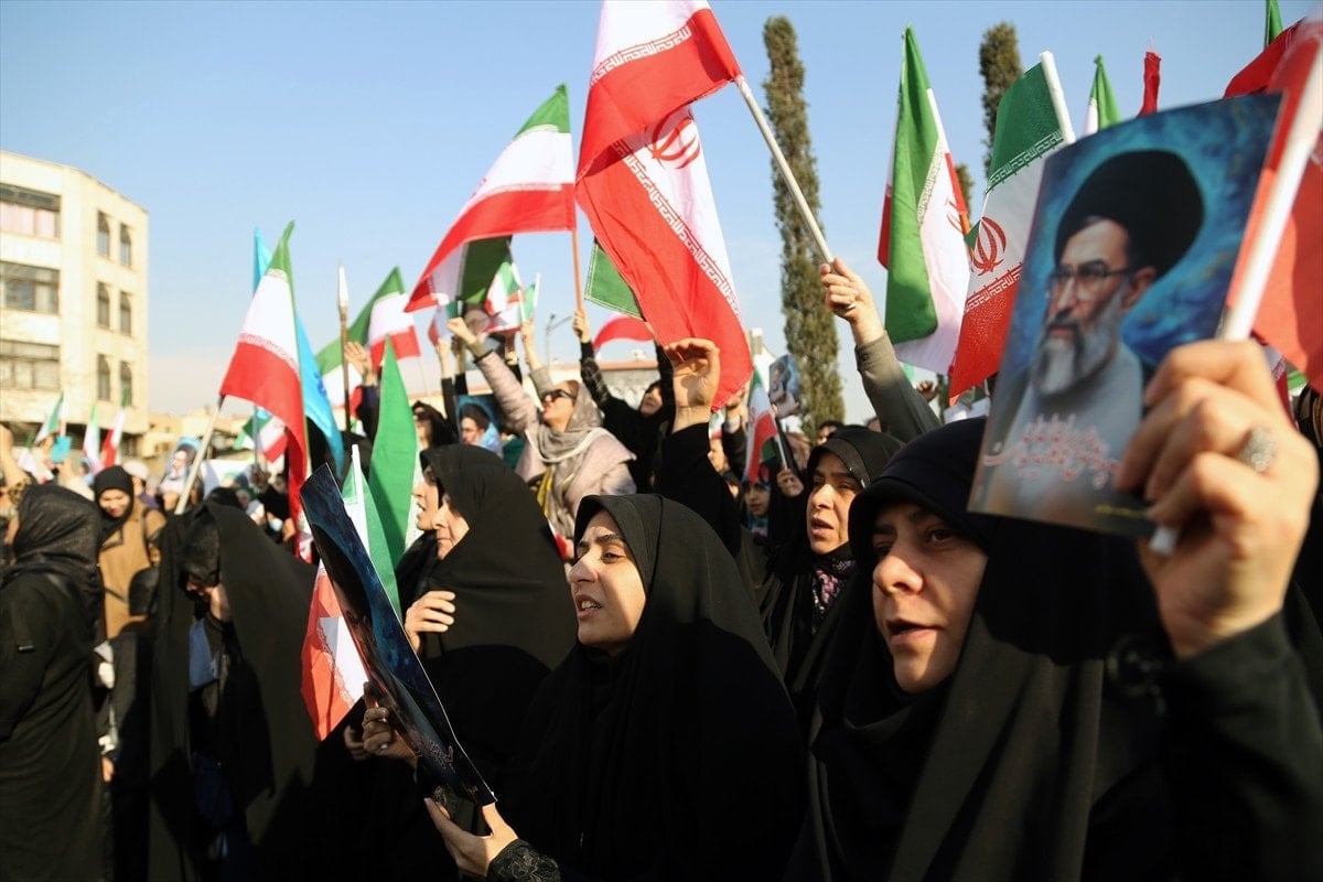 Başkent Tahran’daki İnkılab Meydanı’nda bir araya gelen İranlılar, ABD ve İsrail karşıtı sloganlar attı.