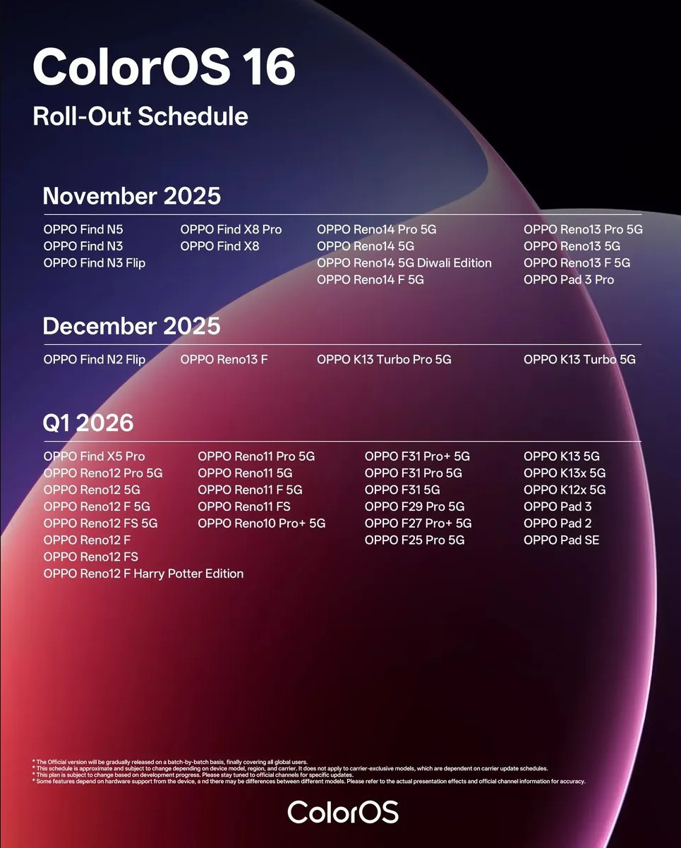 Geçtiğimiz hafta Find N5 ve Find X8 modelleri için dağıtım başlamıştı. Bu hafta itibarıyla ise Find N3, Find N3 Flip ve Find N3 Pad 3 Pro kullanıcıları da yeni sürüme kavuşuyor.