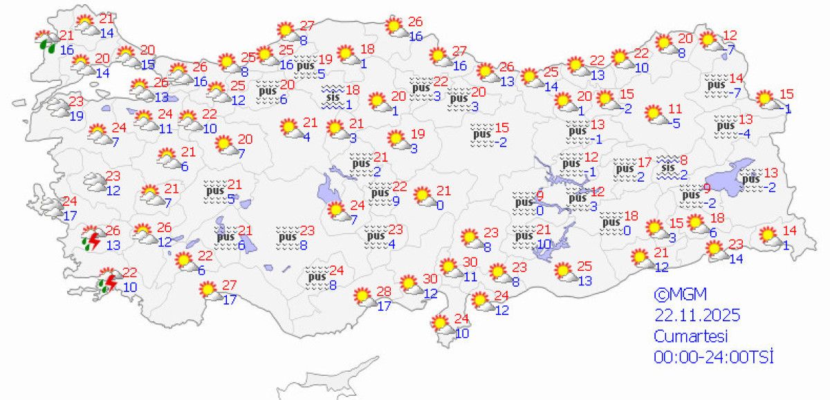 Hafta sonu için beklenen hava durumuna ilişkin değerlendirmelerde bulunan Çevre, Şehircilik ve İklim Değişikliği Bakanlığı Meteoroloji Genel Müdürlüğü Hava Tahmin Uzmanı Fevzi Burak Tekin, yurdun büyük bir bölümünde hafta sonu az bulutlu ve açık bir havanın görüleceğini, gece ve sabah saatlerinde iç kesimlerde yer yer sis ve pusun etkili olacağını söyledi.